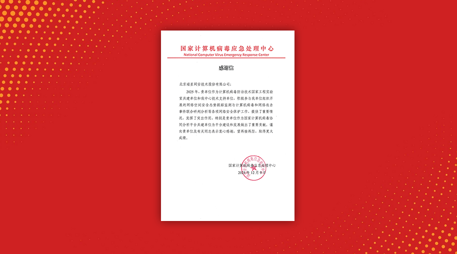 2025收官之际,瑞星获国家计算机病毒应急处理中心致谢