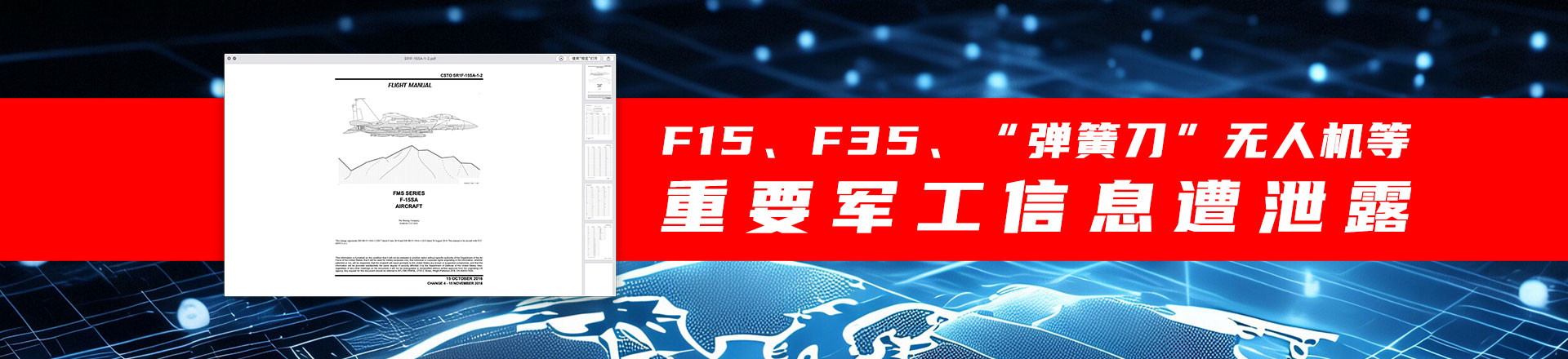 2024年7月2日,有大量美国F15战斗轰炸机及其改装以及武器文件在网上被泄露,技术文档、图纸等资料共约250GB。